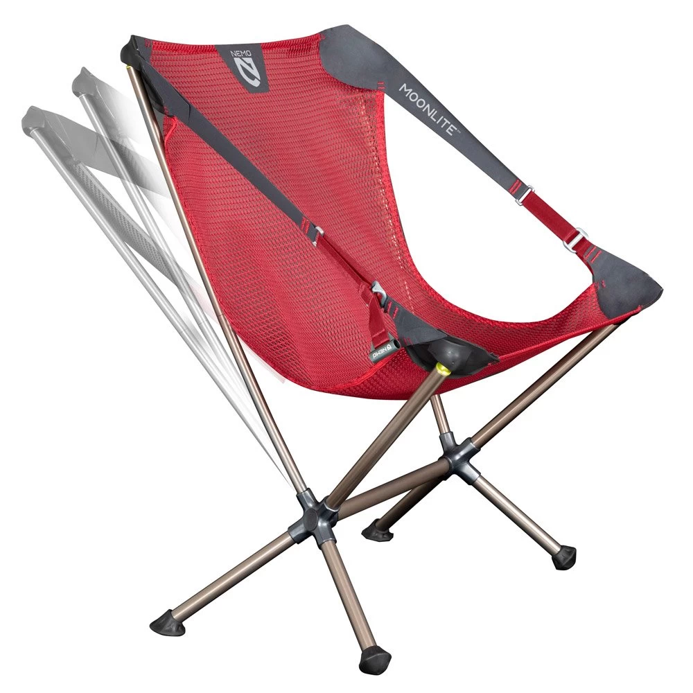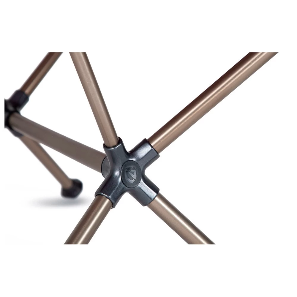 Regálate un merecido descanso junto a la chimenea o bajo las estrellas. La silla de camping Moonlite te permite sentarte cómodamente, para recuperar energías después de un largo día de aventuras. Para ofrecerte el máximo confort, la tela de la silla está construida sin costuras, de forma asimétrica y elástica. La estructura de aluminio es resistente y estable, y su forma en Y puede moverse y alinearse con la posición de tu cuerpo. Resultado: la silla se adapta a ti, dándote una sensación de ligereza muy agradable.