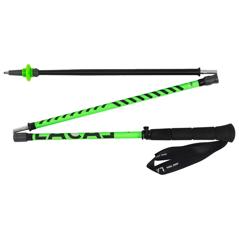 El bastón de trail running Quick Stick Carbon 115-121 de Lacal es un modelo plegable, compacto, robusto y ligero diseñado con dos filamentos de carbono y el último de aluminio. El clip elástico mantiene el bastón plegado y la empuñadura de corcho 3 P+ incorpora el sistema ¼ Turn Fix para enganchar o desenganchar rápidamente el guante en tres posiciones posibles. La tecnología Quick Fast Lock bloquea los tubos de forma fiable, mientras que las puntas de carburo Change Tip ofrecen un buen agarre y se cambian fácilmente.