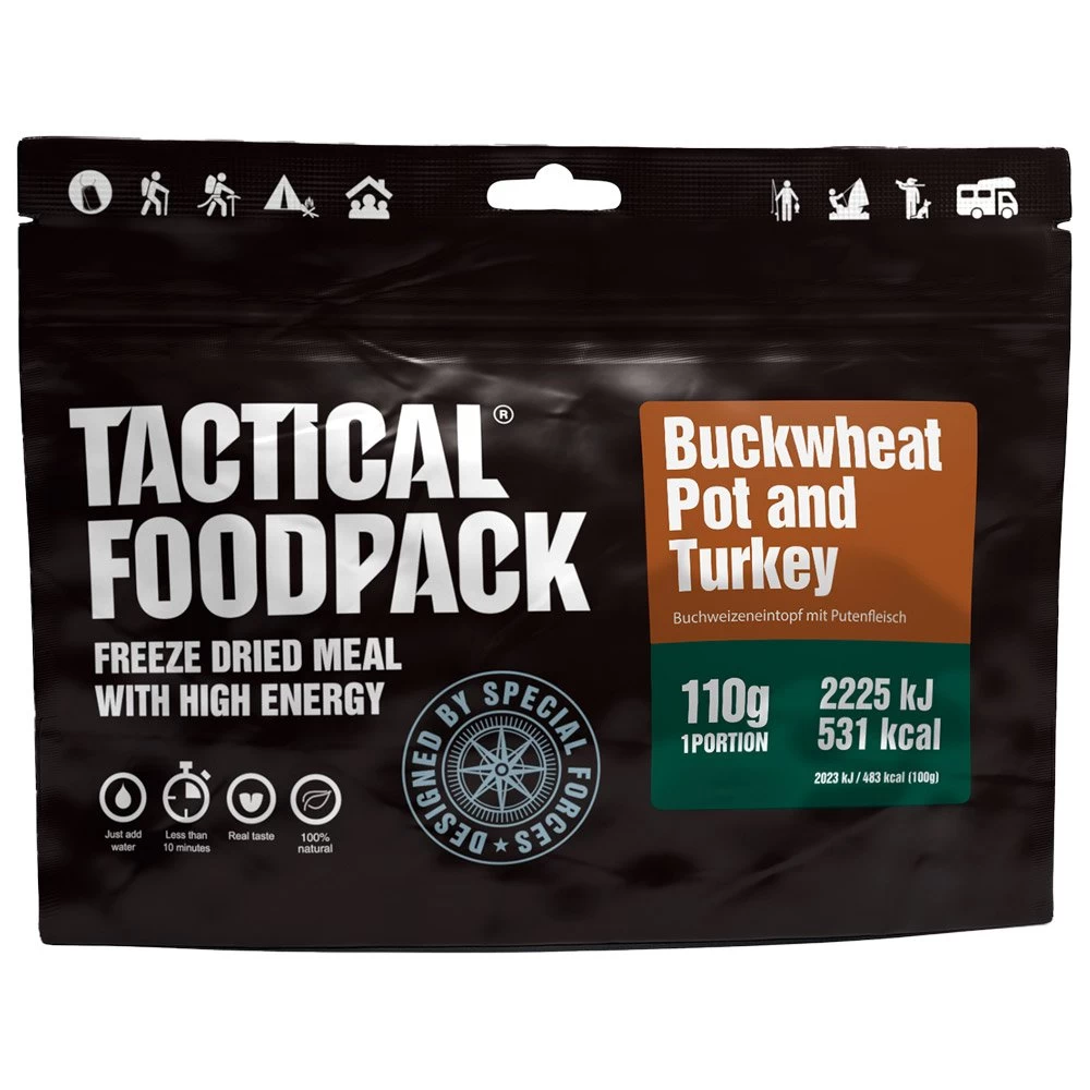 El Alforfón y Pavo 110g Tactical FoodPack es una sabrosa comida liofilizada muy práctica para vivacs en la naturaleza. Con sus ingredientes naturales, esta comida te ayudará a recuperar fuerzas y prepararte para los retos que te esperan, ocupando muy poco espacio en tu mochila.