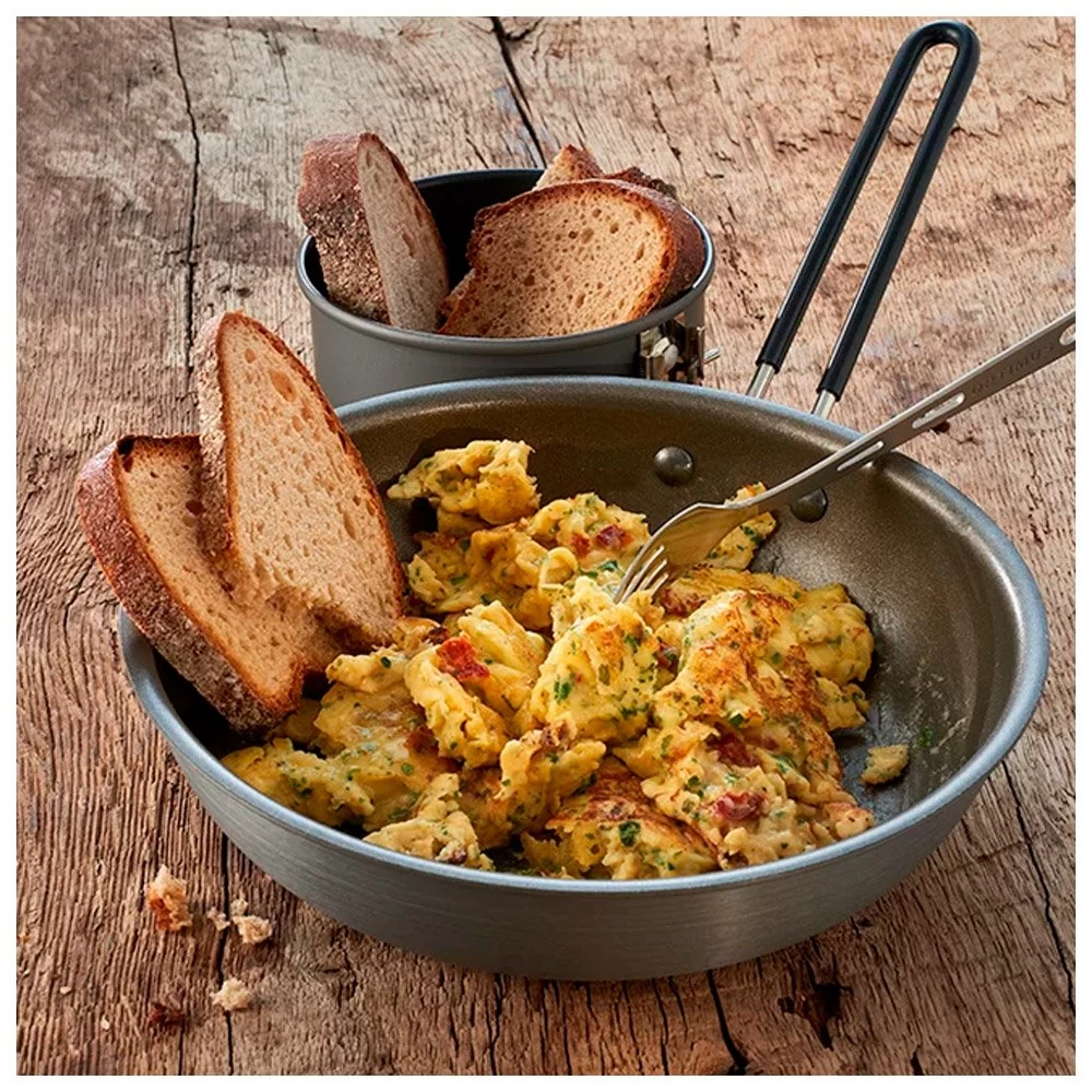 Los huevos revueltos con cebolla 125gr de Trek’n’Eat son unacomida liofilizada compacta y ligera para vivacs al aire libre. Prepara este sabroso plato rápidamente y aprovecha su larga caducidad para reponer fuerzas en tus aventuras.