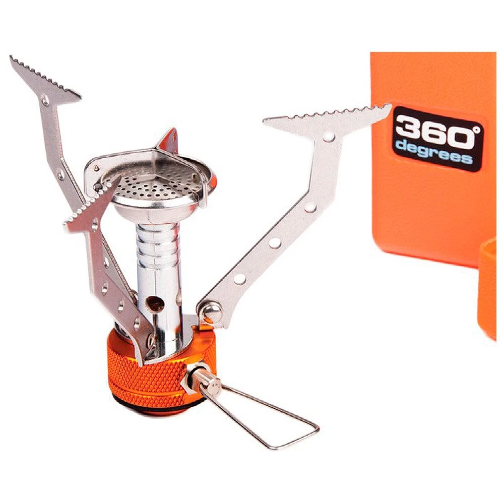 El hornillo Furno 360 Grados es un hornillo muy ligero y compacto , fabricado en acero inoxidable y aleación de aluminio, que puede llevar a ebullición un litro de agua en 3 minutos y 20 segundos. Se incluye un soporte estabilizador de 3 puntas y la llama es regulable en potencia.