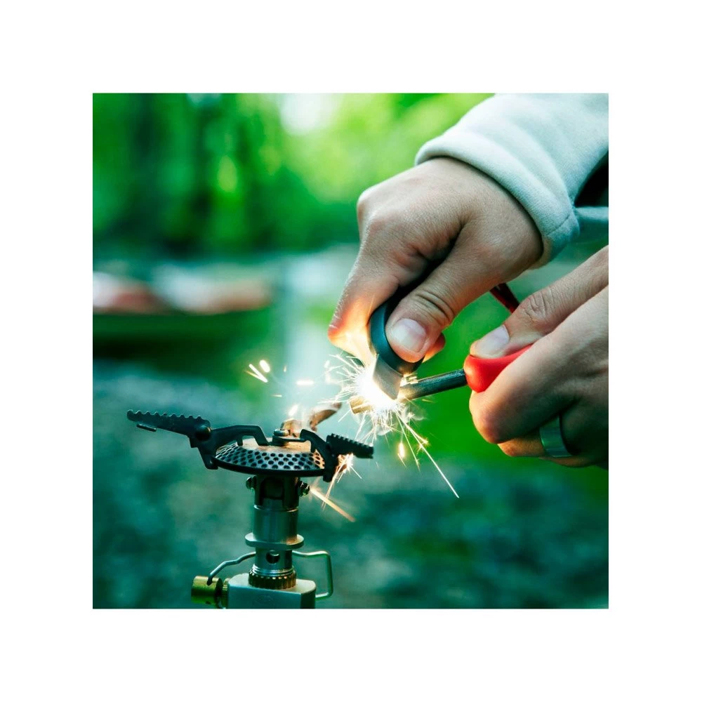 El Light My Fire Firesteel Scout Bio es un iniciador de fuego de magnesio ligero, compacto y duradero. Ideal para encender un fuego en un vivac, funciona incluso en condiciones de viento o lluvia y garantiza 3000 golpes. Diseñado con plástico de base biológica, reduce su impacto en el medio ambiente e incluye un silbato de emergencia.