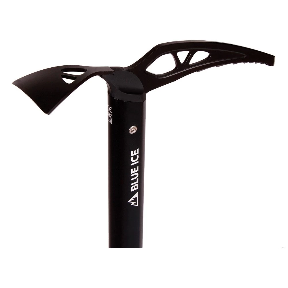 Ideal para viajes por glaciares y alpinismo clásico, el piolet Blue Ice Blackbird es un modelo muy versátil con una cabeza ergonómica de acero cromado que ofrece ligereza y eficiencia. Este último penetra muy fácilmente en el hielo. La zona de agarre bitexturizado proporciona un agarre excelente y el mango de aluminio es resistente y ligero.