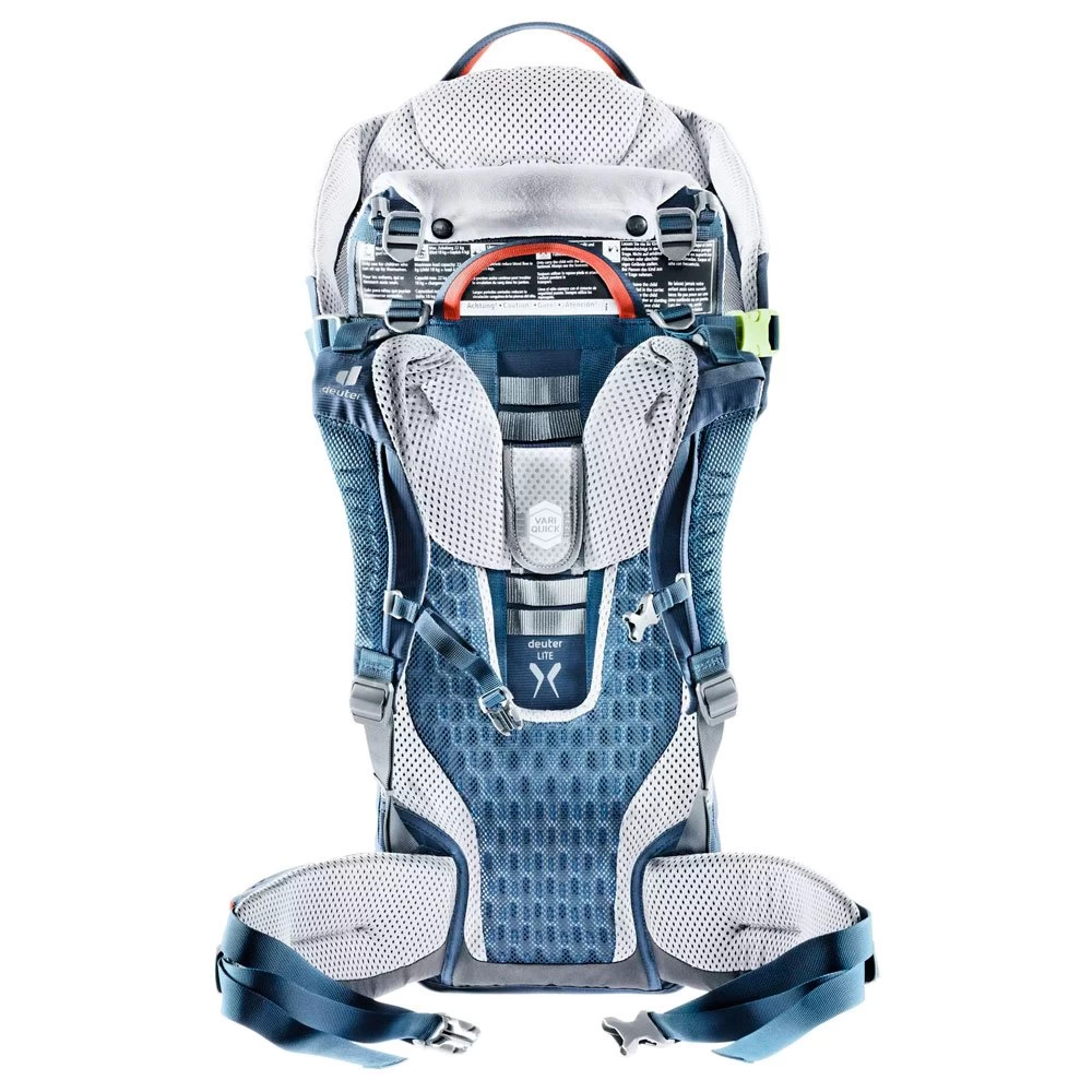 Diseñada para llevar a un niño pequeño hasta un peso máximo de 22 kg, la Deuter Kid Comfort Active está fabricada con material resistente a la abrasión y al desgarro. Cuenta con un panel trasero ventilado Lite Air que favorece la ligereza y el confort. El asiento está equipado con un arnés de seguridad que se hace mucho más fácil de usar por una entrada lateral. Las correas de hombro ajustables y los estabilizadores de cadera permiten que tanto hombres como mujeres se turnen para llevar al niño. El cinturón de cadera hace que el conjunto descanse sobre la pelvis y no sobre los hombros directamente, del mismo modo que una mochila de senderismo o montañismo.