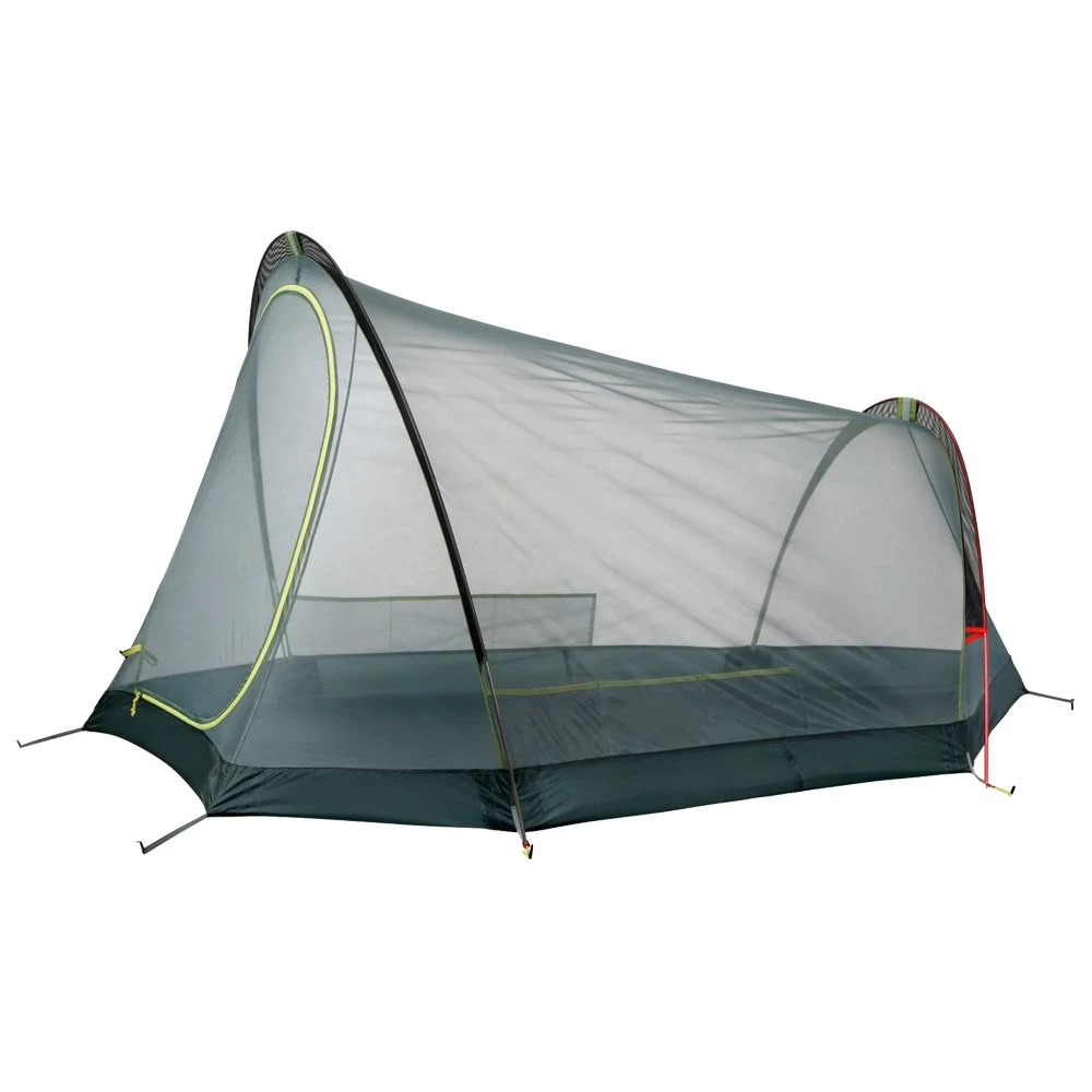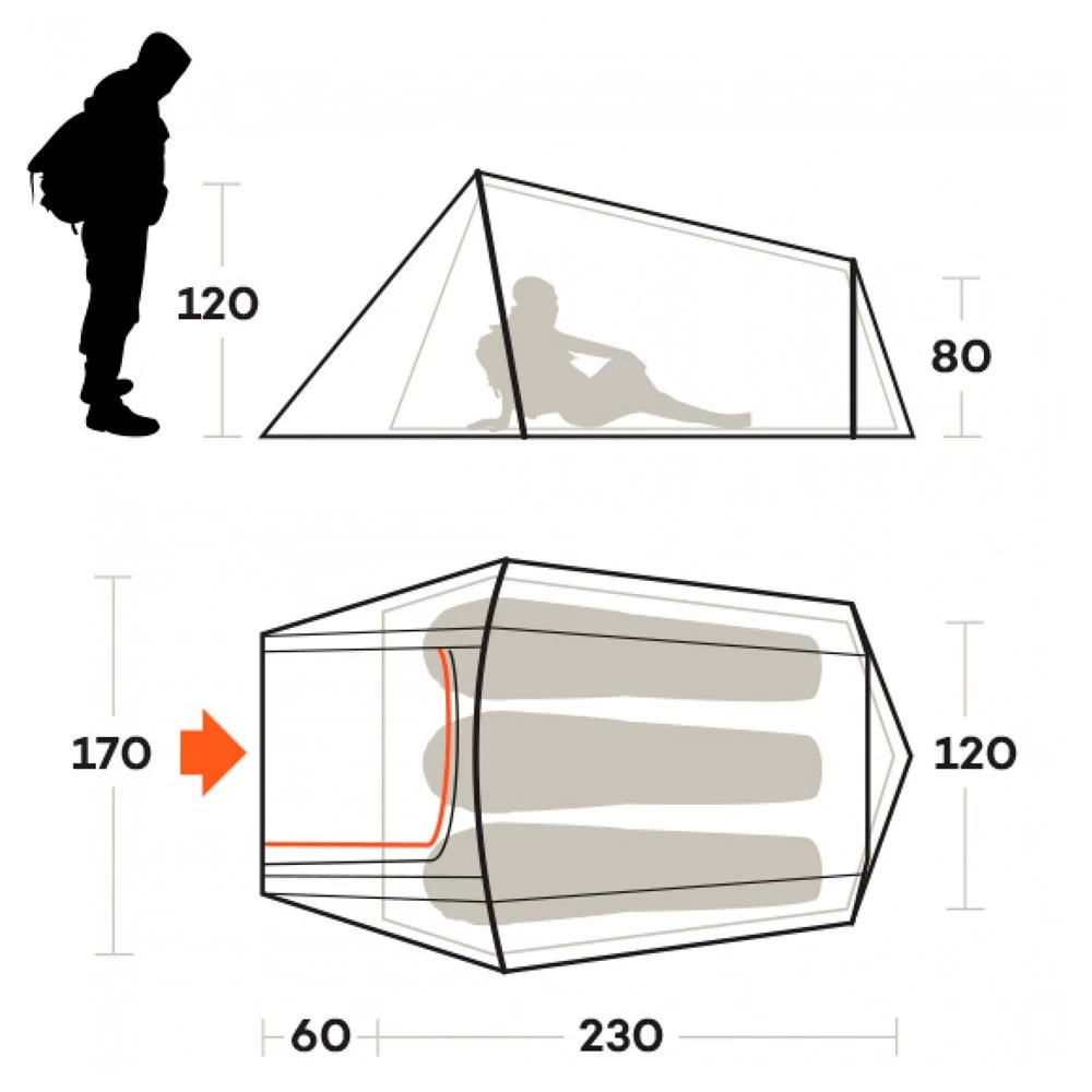 La tienda de campaña de trekking Sling 3 es un modelo relativamente compacto cuando se pliega en su bolsa. Ligero, tiene capacidad para 3 personas que pueden dejar sus mochilas y zapatos en la entrada. Práctico para el turismo o el ciclismo, cuenta con dos bastones codificados por colores para facilitar el montaje, incluso cuando oscurece con un faro. La tienda de campaña Ferrino Sling 3 sólo se puede utilizar con la parte del dormitorio cuando hace calor y está seca, lo que le permite dormir con vistas a las estrellas, mientras está protegido de los mosquitos.