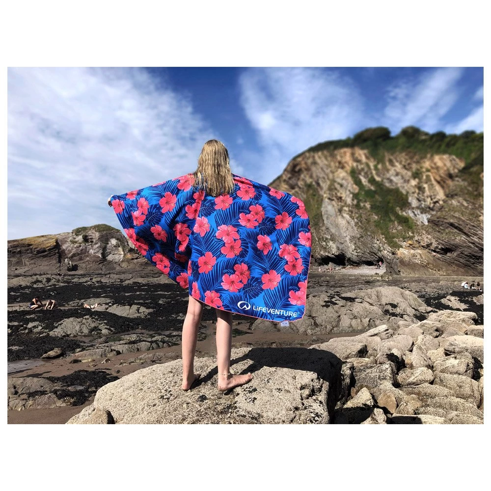 La toalla de viaje más popular de Lifeventure, la Toalla Softfibre Reciclada Impresa es un diseño versátil y práctico fabricado en parte con poliéster reciclado. Es muy suave, ligera y no te costará secarte, ya que es capaz de absorber hasta 9 veces su peso. Una vez que hayas terminado de usarla, puedes ponerla a secar y reutilizarla rápidamente gracias a que se seca 8 veces más rápido que las toallas tradicionales. Un pequeño extra, se beneficia de un tratamiento higiénico que ahuyentará los malos olores para que la toalla se mantenga siempre fresca.